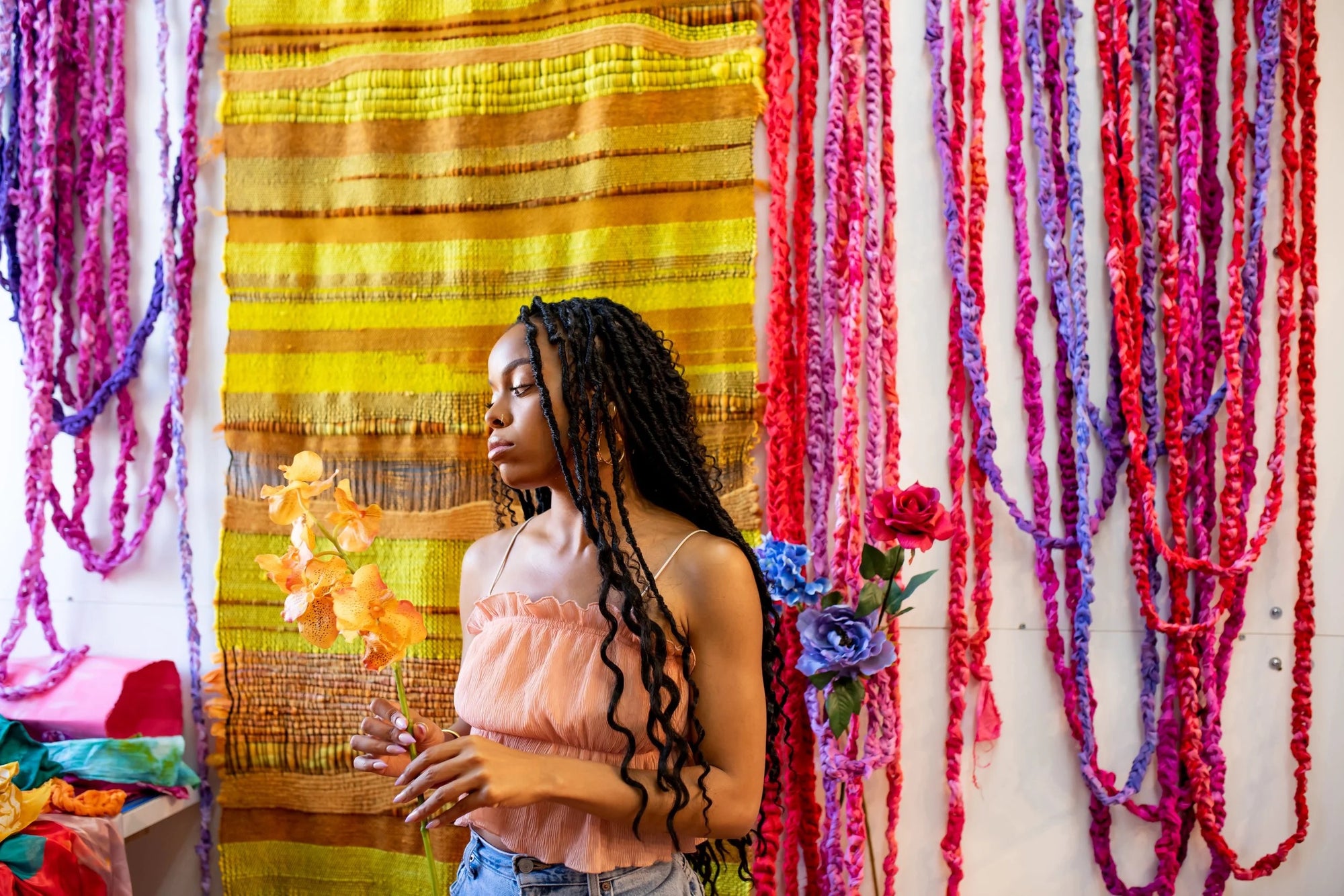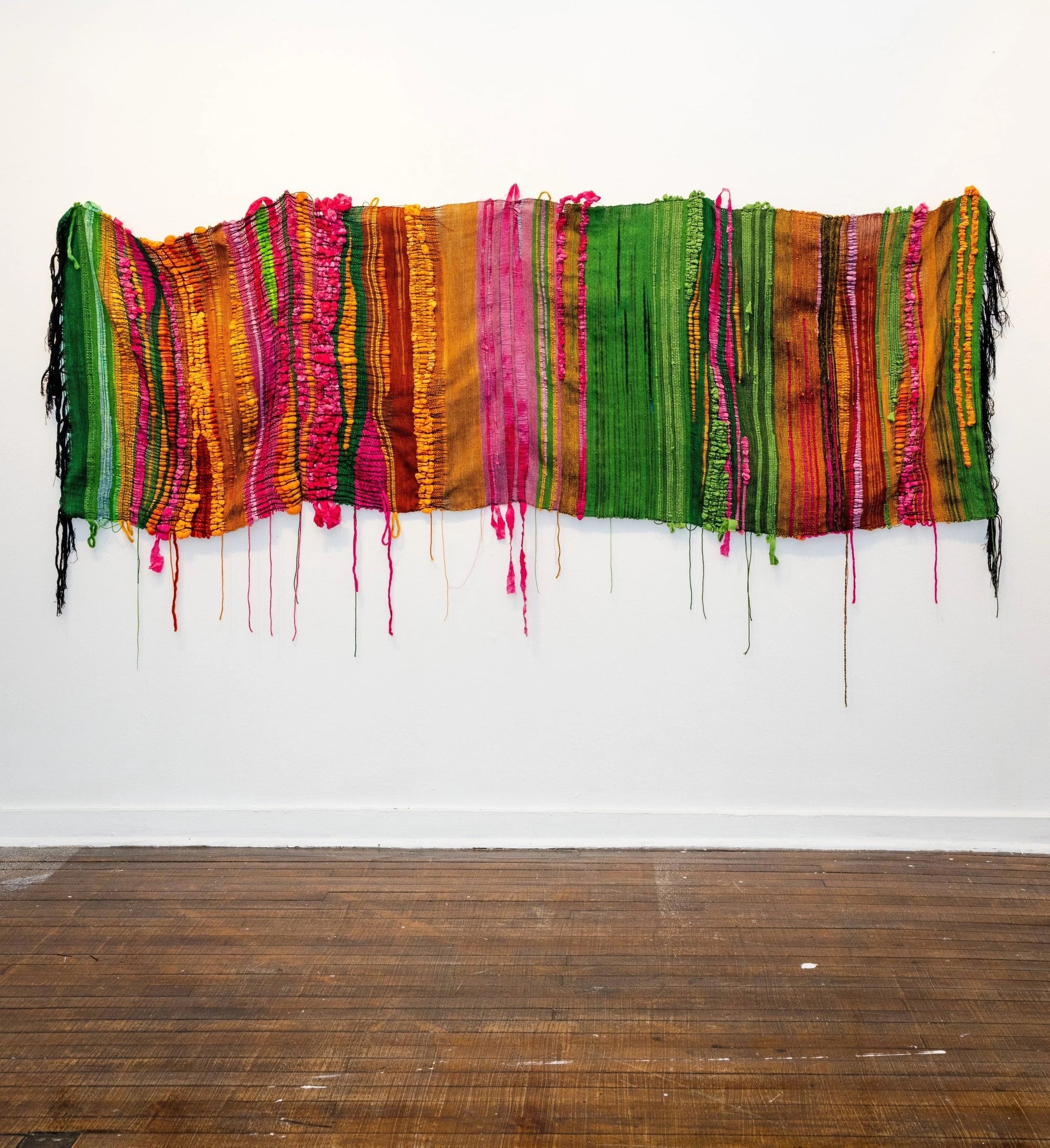 The first colorway in the Baltimore Renaissance collection, Vibrant Grace is inspired by the work of Baltimore fiber artist, Aliana Grace Bailey. Our shared love of saturated, vibrant colors is reflected in the work you see pictured here. The colorway is a surprise, but these photos are my inspiration.